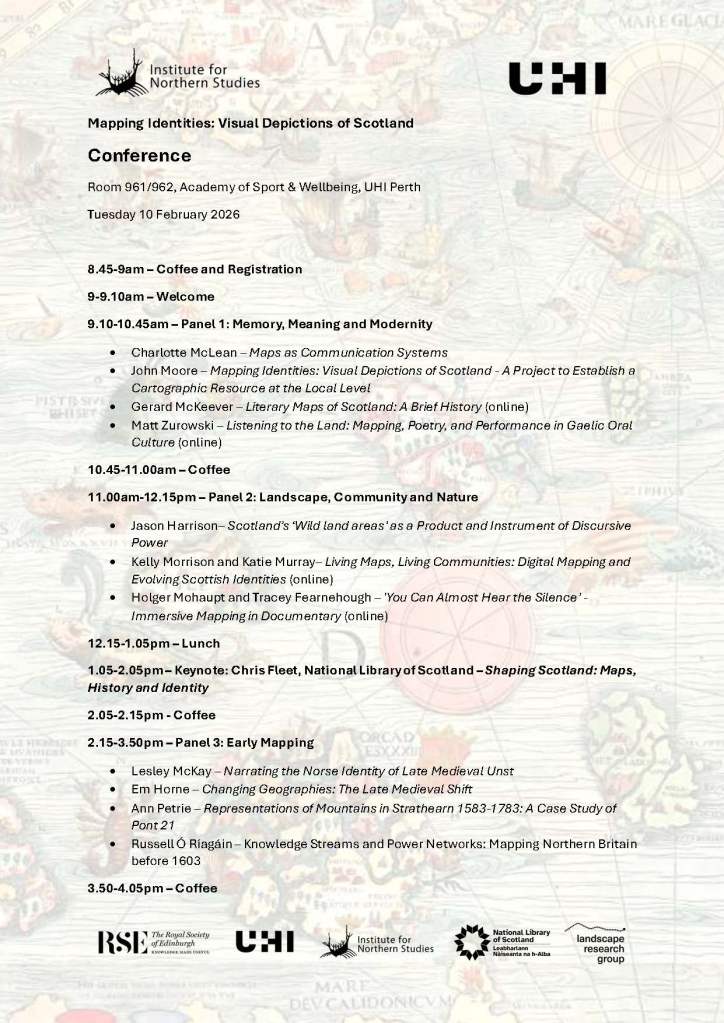 The UHI Institute for Northern Studies Mapping Identities: Visual Depictions of Scotland Conference, hosted at UHI Perth on 10th February 2026, was an outstanding success and received much positive feedback from attendees.